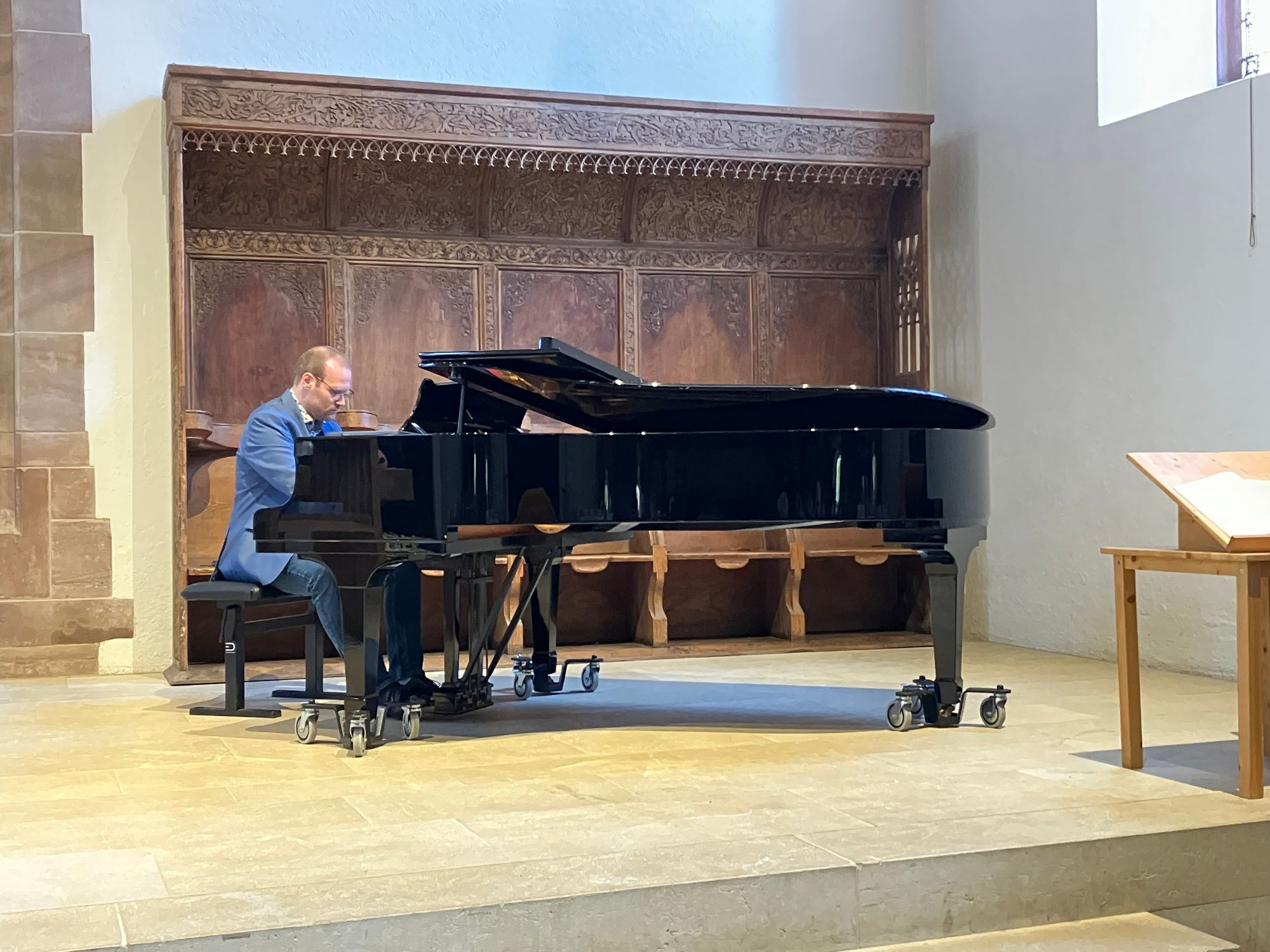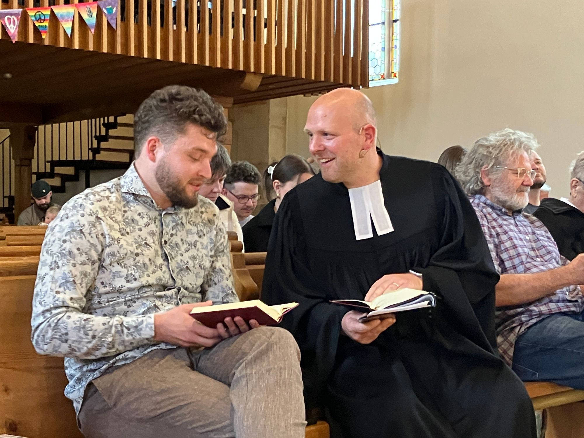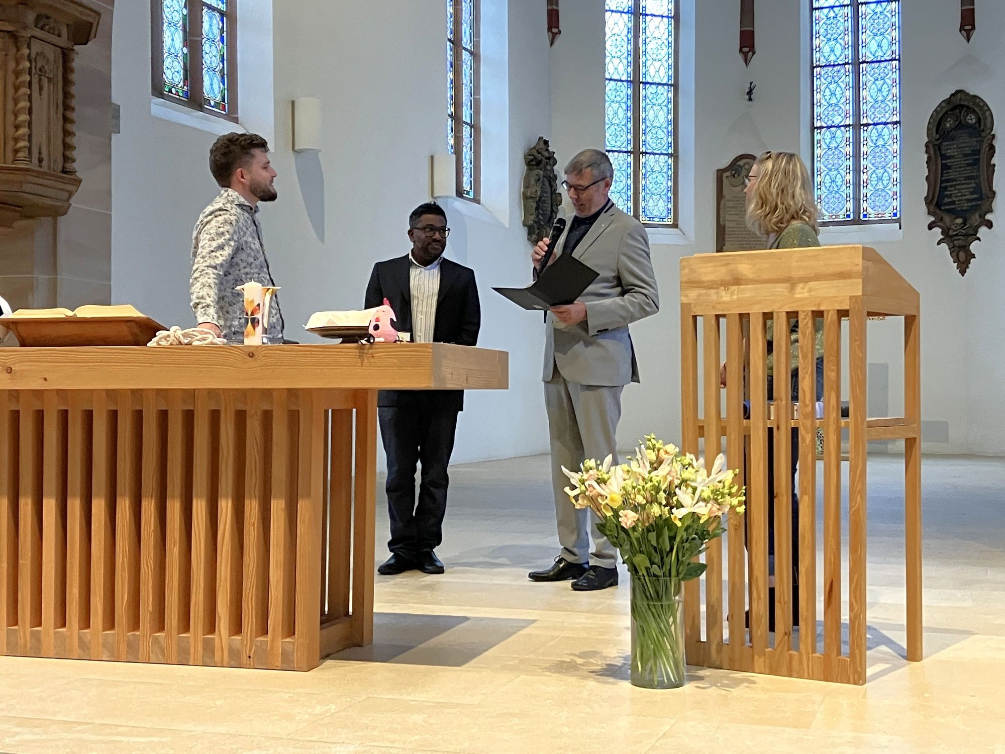 Christina Stingelin als Verantwortliche der Personalkommission der Kirchgemeinde brachte ihre Freude über die Anstellung zum Ausdruck. Esther Meier und Raphael Bachmann von Vorstand des Diakoniekonvents und Kirchenrat Burkhard Wittig leiteten durch die Beauftragung. Pfr. Tobias Dietrich gestaltete den Predigtteil wie auch das anschliessende Abendmahl und die Fürbitten, die durch spontane Wünsche der Gottesdienstteilnehmenden an Samuel Hofer abgerundet wurden. Musikalisch umrahmt wurde die Feier von Benedikt Schwarz an der Orgel und am Flügel.